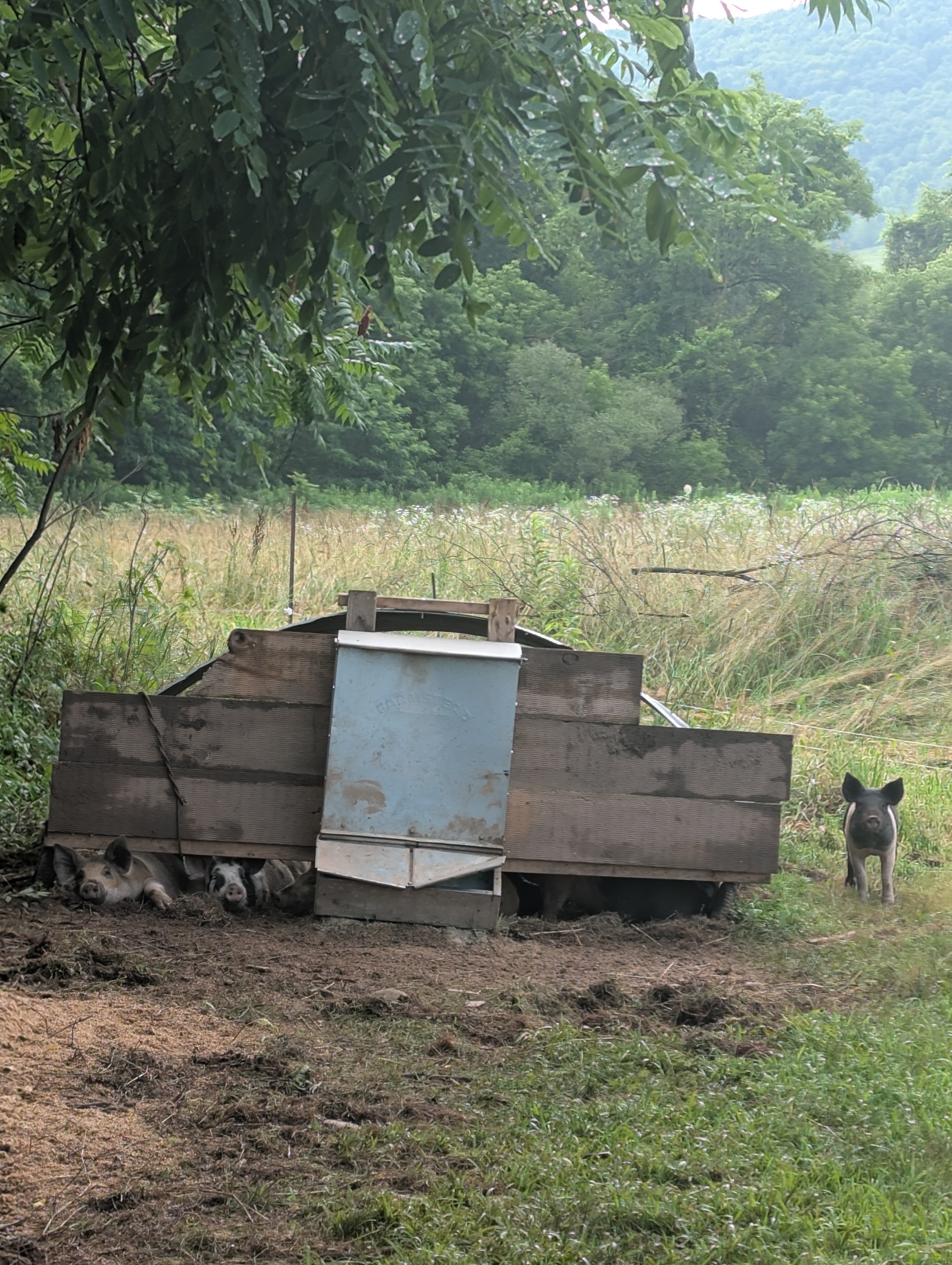 The other half of soil regeneration is animal disturbance. Animals trample, scratch, and forage through our pastures and orchards. All supplemented feed is Organic. This leads to healthy and happy animals while creating very nutrient dense meat and eggs. At the same time the animals are fertilizing the land and helping prevent water runoff. We currently raise Pigs, Laying Hens, and Meat Rabbits.